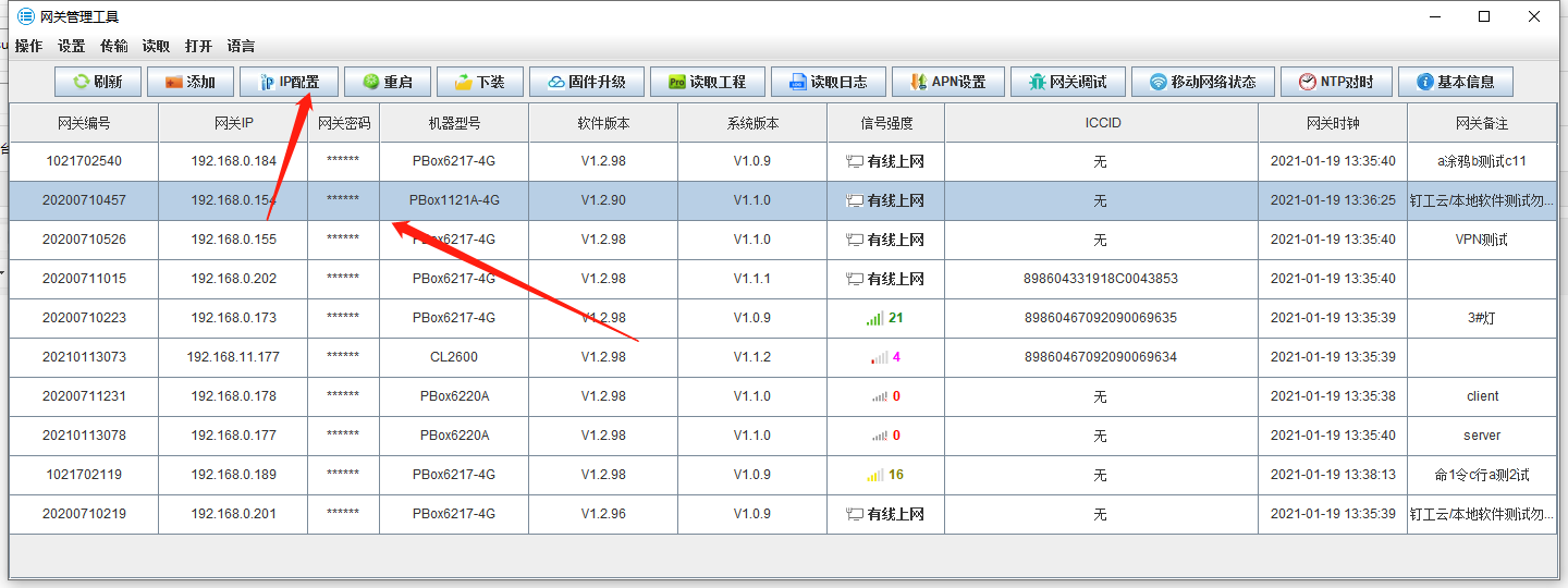 通過安裝PBox客戶端工具軟件,打開PBoxMgrTool 軟件,將網線連接至計算機與智能網關,軟件刷新可搜索到智能網關(請關閉計算機的防火墻包括360軟件),同時可以看到網關編號及IP地址,此時需要修改自身計算機的網卡IP與智能網關同一個網段方能進行下一步的IP修改操作。