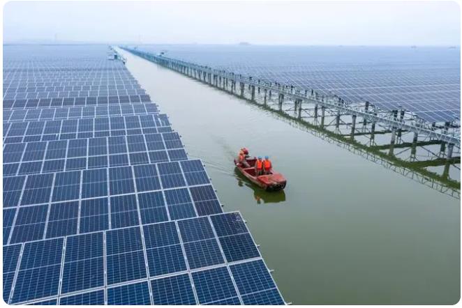 該項目位于溫州浙南產(chǎn)業(yè)集聚區(qū)甌飛圍區(qū)內(nèi)的灘涂上,占水域面積約4.7平方公里。項目將漁業(yè)養(yǎng)殖和光伏發(fā)電相結合,“上可發(fā)電、下可養(yǎng)魚”,并網(wǎng)后年平均發(fā)電量達到6.5億千瓦時